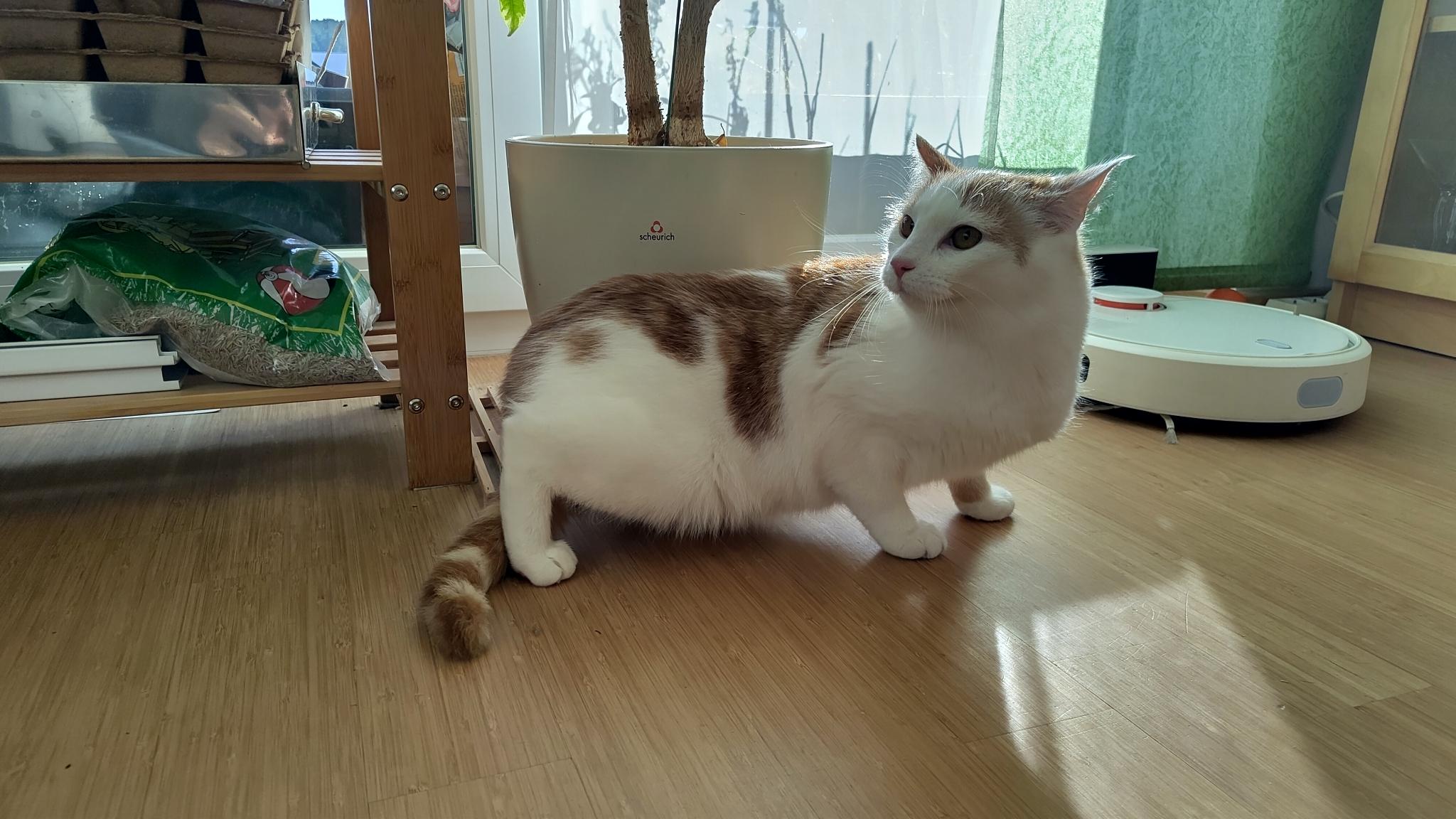 Ginger hat sich seit seinen ersten Tagen bei uns sehr verbessert in der Zutraulichkeit.Aber Merlin(unsere zweite Katze) ist schon wessentlich zutraulicher. Seit ein paar Monaten haben wir automatische Futternäpfe, er(Ginger) stellt sich mit den Futternäpfen noch ein bisschen blöd an. Ginger tritt nicht auf das Trittbrett, zum fressen sondern streckt sich wie eine Giraffe aus und frisst.